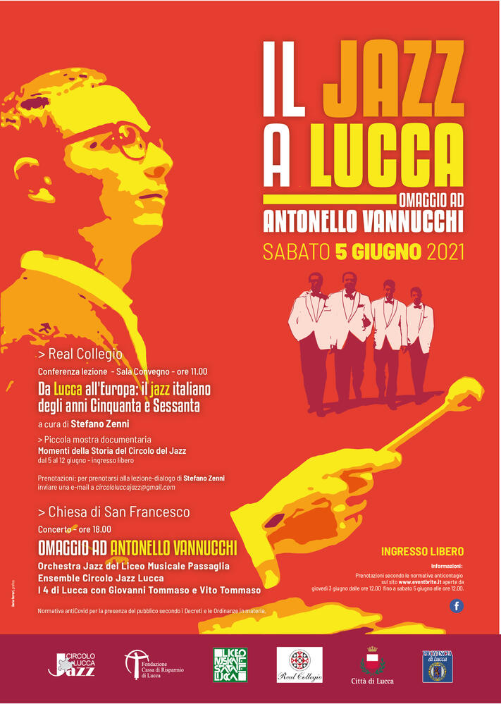 Organizzata insieme al Liceo Musicale Passaglia con la collaborazione del Real Collegio di Lucca e il sostegno della Fondazione Cassa di Risparmio di Lucca, la giornata prevede due eventi. Alle 11 nella sala del Capitolo al Real Collegio (accesso da via della Cavallerizza), a ingresso gratuito ma con prenotazione obbligatoria, c’è la lezione-dialogo di Zenni ”Da Lucca all'Europa: il jazz italiano degli anni Cinquanta e Sessanta”. Le fa da cornice la piccola mostra documentaria: “Momenti della Storia del Circolo del Jazz” che rimane aperta fino a sabato 12 giugno a ingresso libero con orario pomeridiano. Prenotazioni via e-mail a circololuccajazz@gmail.com.