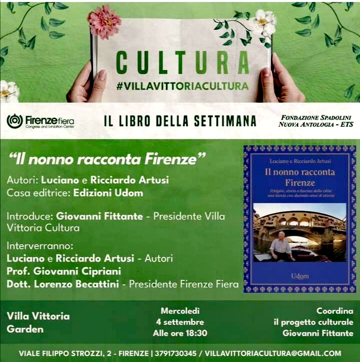 Con Luciano e Ricciardo Artusi, saranno presenti Giovanni Fittante (presidente Villa Vittoria Cultura), Lorenzo Becattini (presidente Firenze fiera) e il professor Giovanni Cipriani.