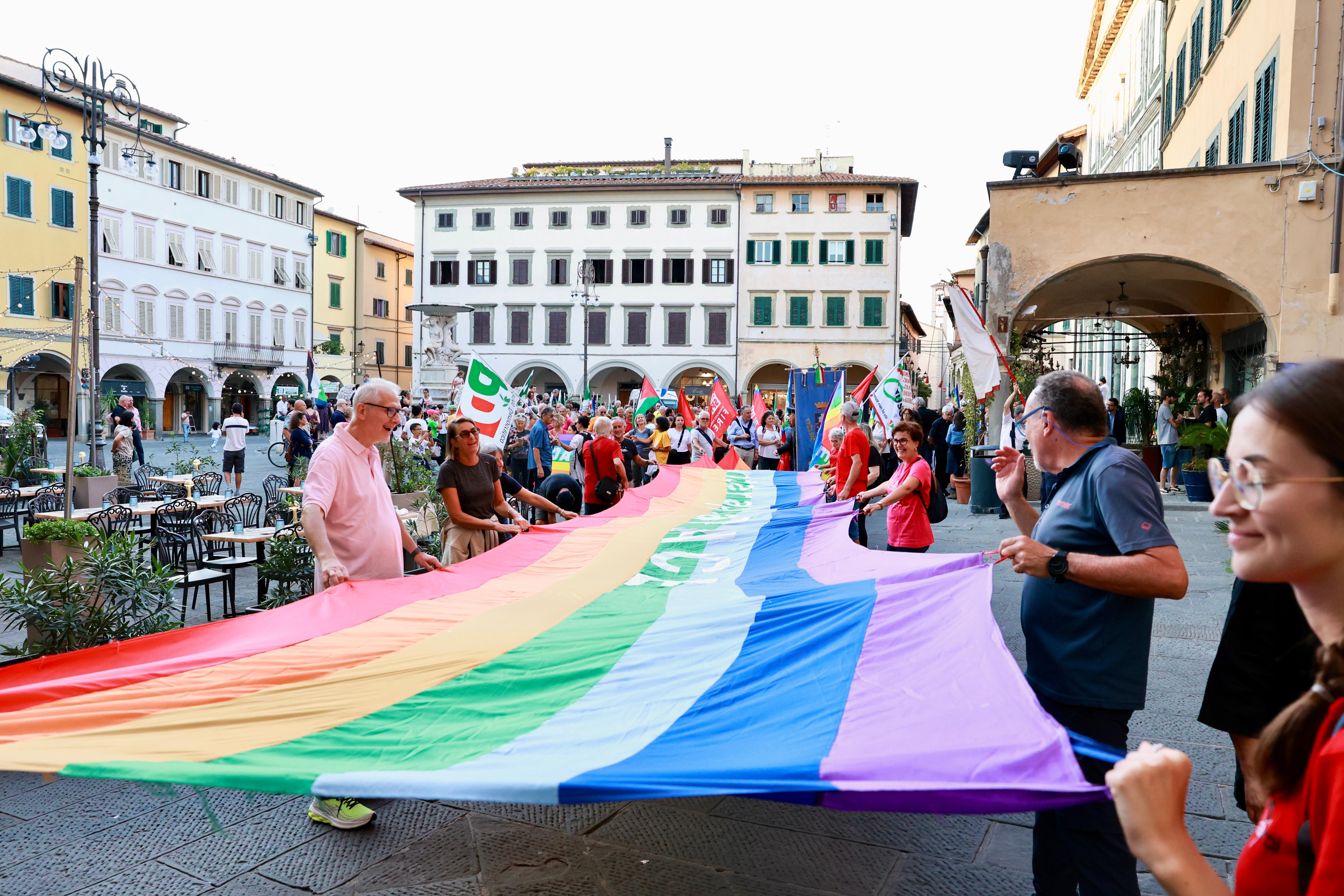 Famiglie intere, tanti giovani, tanti pensieri, tante vite erano tutte lì. Portavano orgogliosi la grande bandiera a strisce colorate, simbolo della marcia per far sentire, forte, che anche Empoli è scesa in piazza perché è e sarà sempre una città di pace e per la pace e si mobilita per chiederla e dire basta alle atrocità che stanno avvenendo a Gaza per le quali non è più possibile restare inermi.