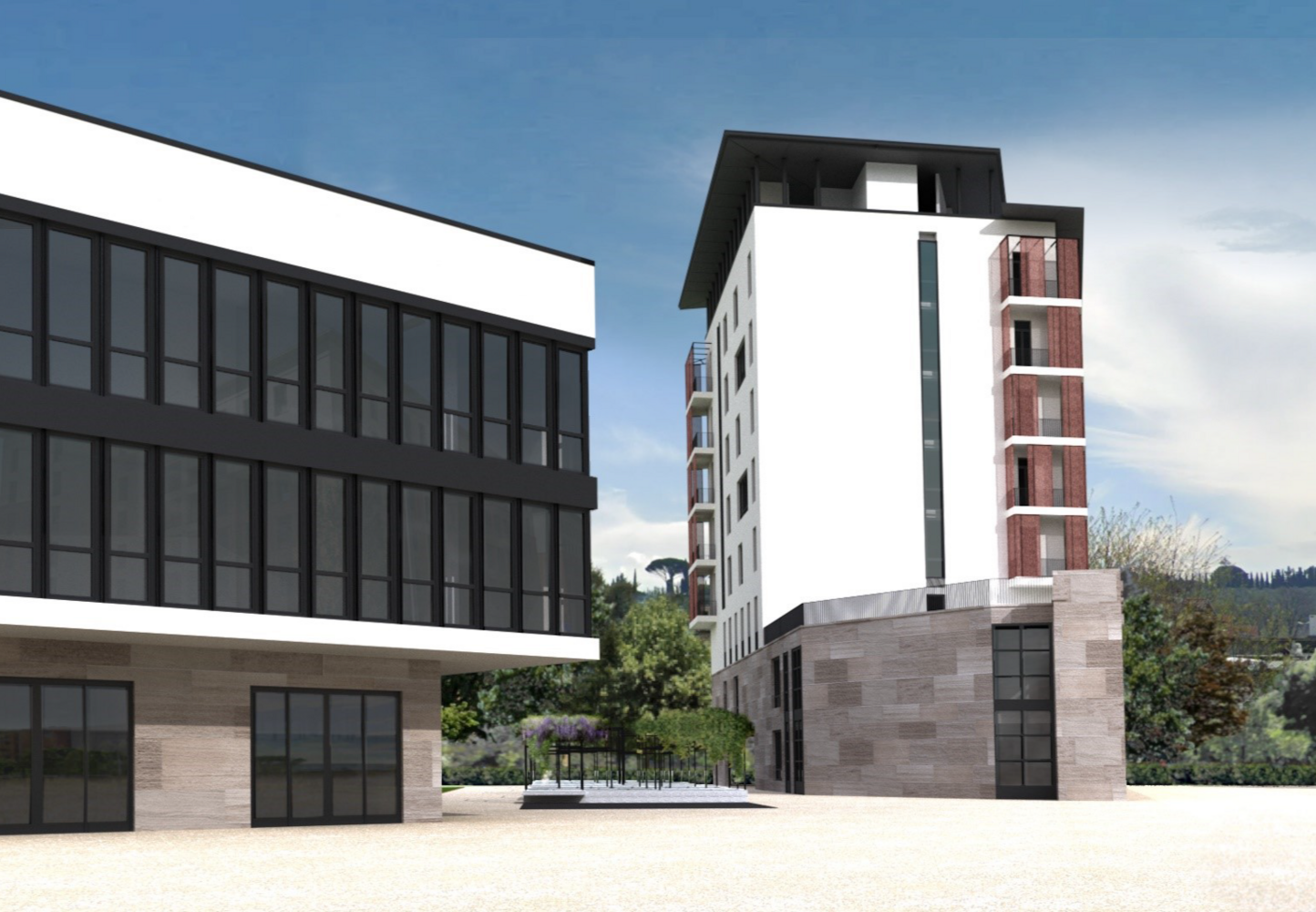 Il progetto prevede la realizzazione di due edifici, il primo a torre (edificio A) e il secondo in linea (edificio B), destinati a ospitare gli alloggi per gli studenti e gli spazi comuni di socializzazione, con la demolizione degli edifici attualmente presenti nell’area. L’edificio A si svilupperà su otto piani, con servizi collettivi al piano terra e al primo piano e aree giorno/cucina ai piani superiori, dove sono collocate le camere singole, doppie e i minialloggi, ciascuno dotato di servizi igienici; l’edificio B si svilupperà invece su tre piani, con al primo e secondo piano le camere singole e doppie e i servizi collettivi concentrati al piano terra.