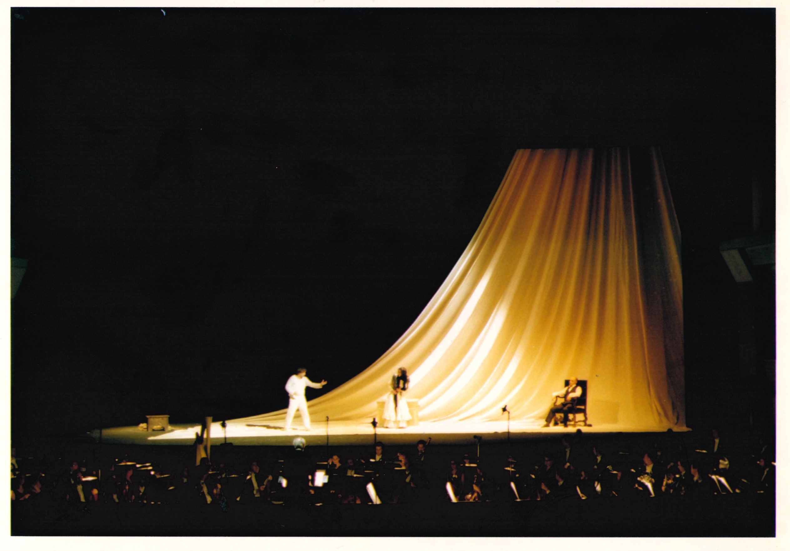 Abbiamo inoltre un cast davvero formidabile, composto non solo da cantanti ma anche da grandi attori come Sandro Lombardi; abbiamo dunque come risultato questo dialogo interessantissimo fra l’Orchestra, il Coro, i cantanti e gli attori; una situazione davvero singolare, nella quale l’attore ha modo di trasmettere delle emozioni particolari, evocando determinate sensazioni solo con il modo di parlare o di recitare.”