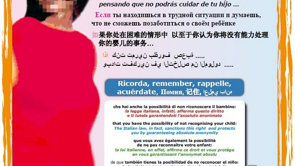 FIRENZE - "Se ti trovi in situazione di difficoltà e stai pensando di non farcela a tenere il tuo bambino...", questo c'è scritto in sette lingue sulle locandine e gli opuscoli che vogliono far conoscere "Mamma segreta", il progetto della Regione per sostenere le gestanti e le madri in gravi difficoltà, e prevenire l'abbandono alla nascita.