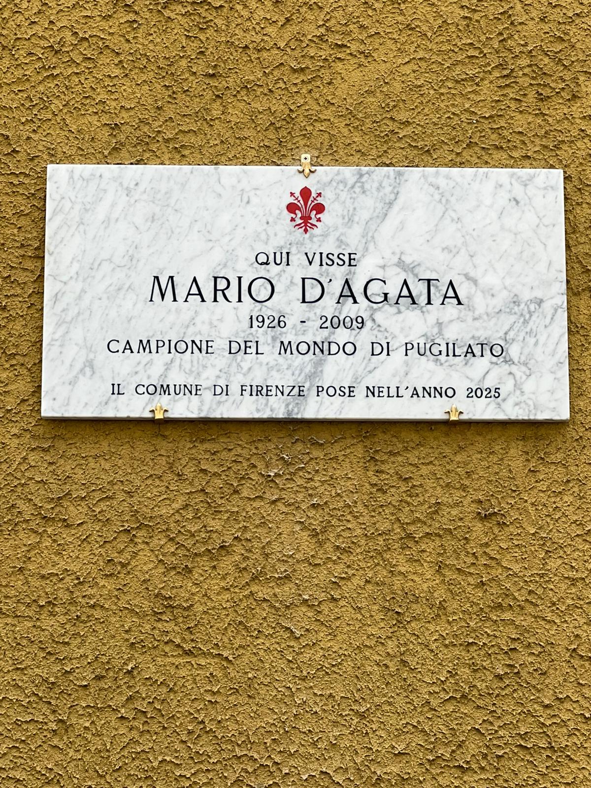 Mario D’Agata nacque sordo ad Arezzo il 29 maggio 1926. Appassionato di pugilato, nel 1950 diventò professionista. La federazione, in prima istanza, bocciò la sua richiesta perché venne accertato che D’Agata non percepiva il suono del gong ad inizio e fine ripresa ma con caparbietà, nel 1952, ottenne la licenza diventando il primo pugile sordo a competere a livelli professionistici. Mario D’Agata diventò campione italiano dei pesi gallo nel 1953 e, successivamente, campione europeo e campione del mondo dei pesi gallo. Dal 1956 visse a Firenze, nell’abitazione in viale Aleardi, fino alla sua morte avvenuta nel 2009.. È Mario D’Agata, campione italiano ed europeo di pugilato, che oltre agli avversari sul ring ha dovuto anche combattere contro i preconcetti del mondo dello sport nei confronti dei portatori di disabilità. Nonostante fosse nato sordo, riuscì infatti a diventare prima professionista e poi campione di pugilato.