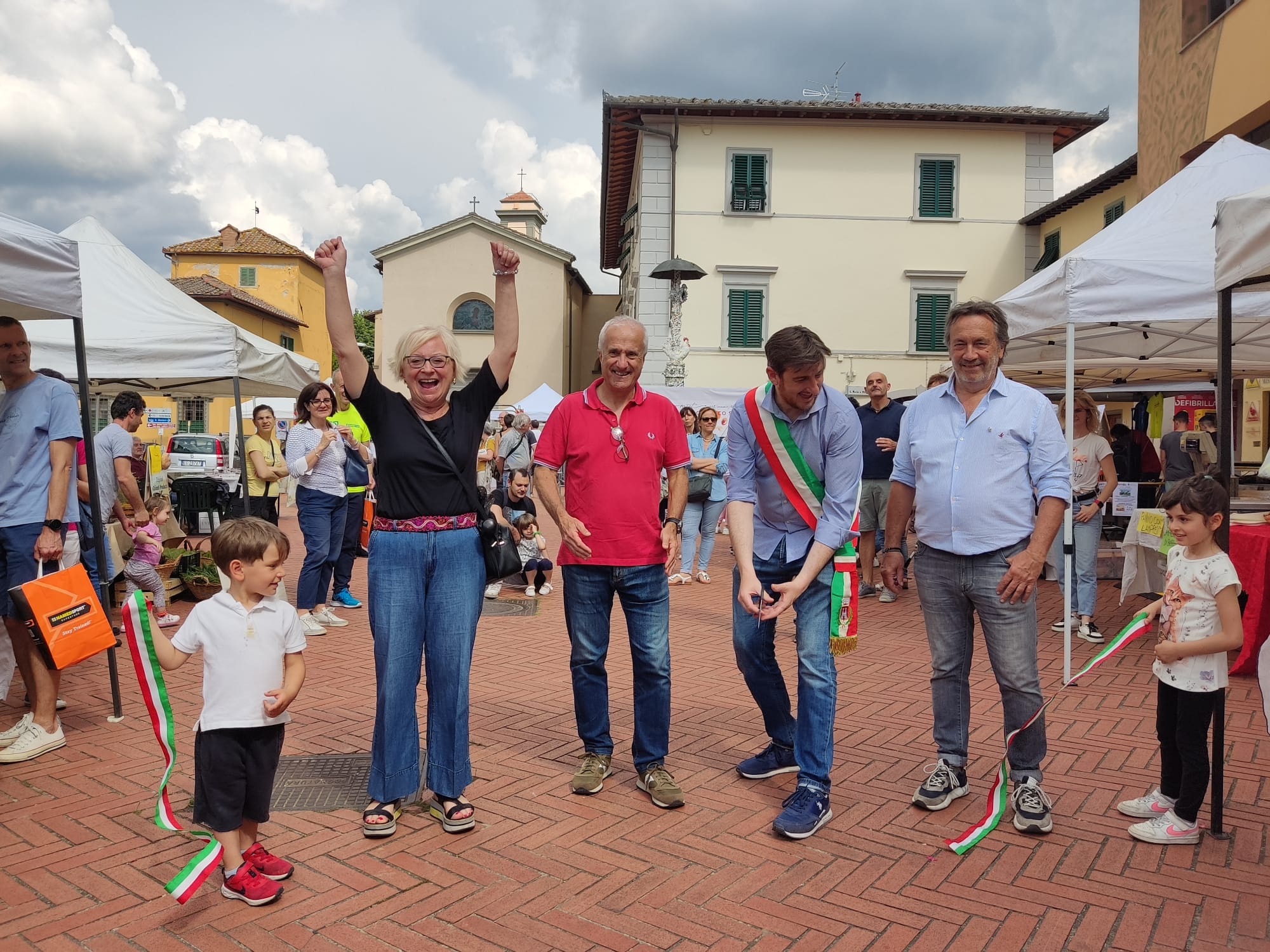 San Casciano in Val di Pesa, 6 giugno 2023. Forbici sul nastro tricolore per aprire ufficialmente il Mercato della Terra di Mercatale Val di Pesa. Il sindaco Roberto Ciappi ha dato il via alla prima esperienza che nel territorio sancascianese persegue la filosofia Slow Food con un appuntamento continuativo nel corso dell’anno legato al sodalizio tra cibo di qualità, sostenibilità ed equità.