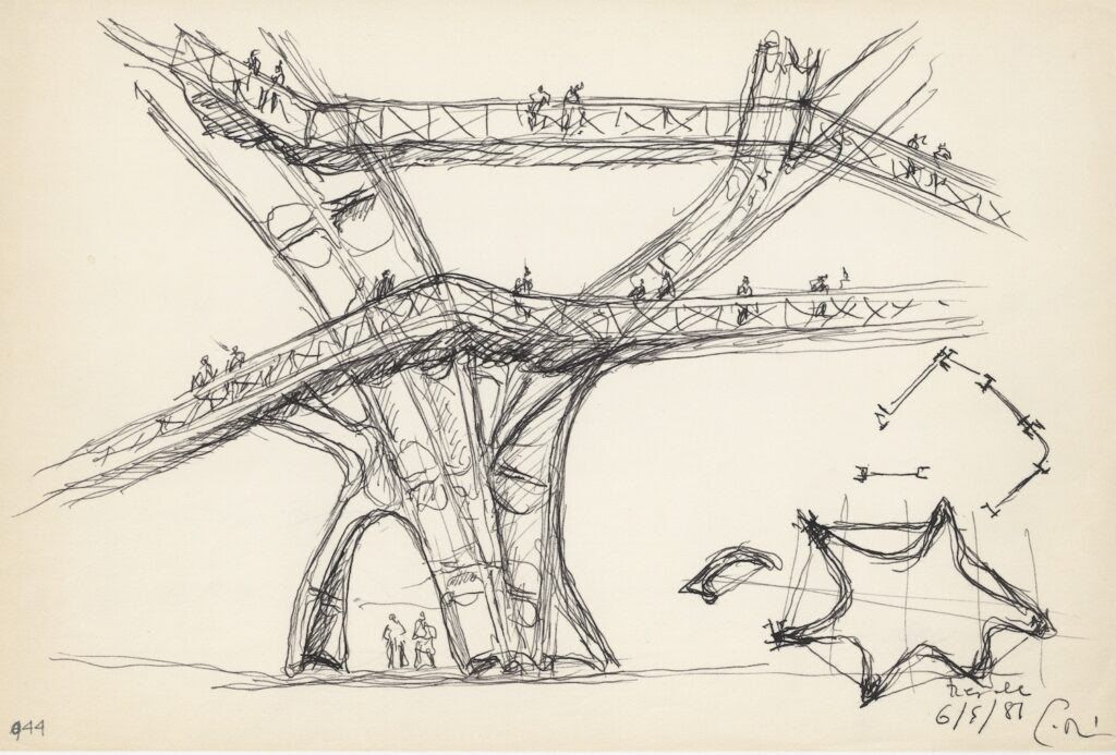 La selezione dei documenti in mostra, a cura di Andrea Aleardi, Alessandro Masetti e Nadia Musumeci, prevede non solo il testo de “La Città Variabile”, ma anche la potente immagine metaforica di approdo e rinascita de “L’Arca incagliata nella roccia” (1987) e un’animazione digitale creata a partire dagli schizzi per il visionario progetto per un Centro sportivo (1980-1985) che sarebbe dovuto sorgere a Prato, una delle città protagoniste del Padiglione.