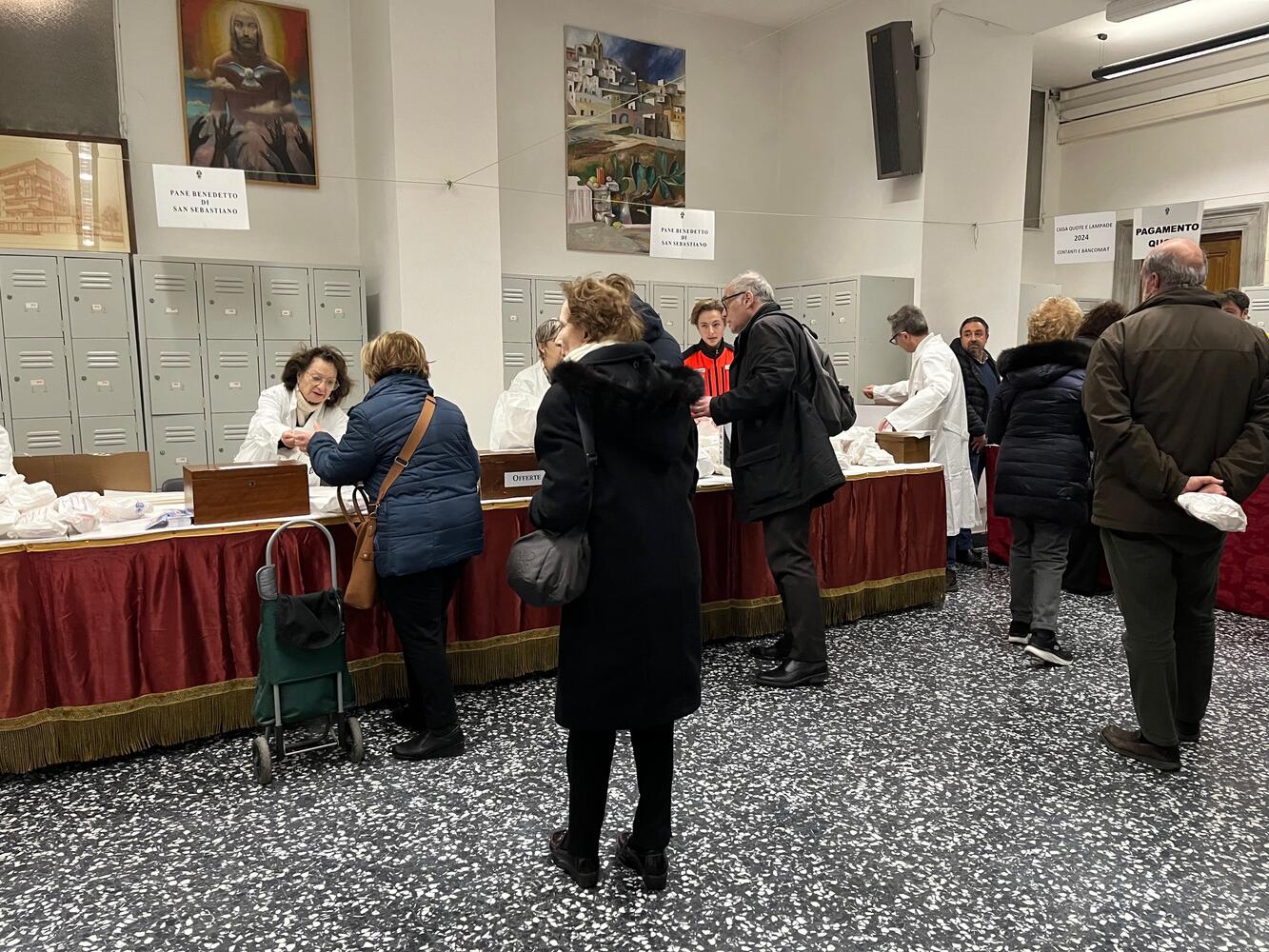 Firenze, 20 gennaio 2024 – Grande l’affluenza da parte dei fiorentini nella sede di piazza Duomo e nelle sezioni dell’Arciconfraternita - Sezione di Campo di Marte, Sezione Nord, Sezione di Ponte di Mezzo e Sezione Oltrarno –, fin dalle prime ore della mattina le persone si sono messe in fila per ricevere il panellino benedetto, simbolo di fede, di amore verso il prossimo e di vicinanza alla città, a dimostrazione del grande affetto verso la Misericordia di Firenze. La mattina S. Em.za Cardinale Giuseppe Betori ha officiato, come da tradizione, la Santa Messa nell’Oratorio dell’Arciconfraternita davanti alle autorità cittadine.