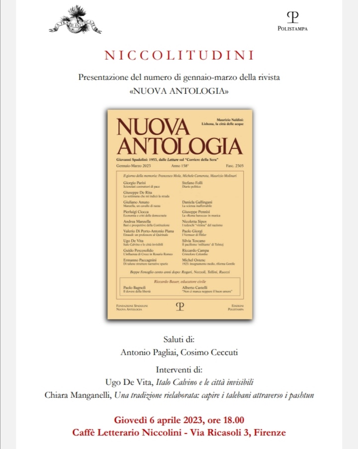 Nell'ambito delle interessanti Niccolitudini appuntamento il 6 aprile con la presentazione del numero di gennaio-marzo della rivista «NUOVA ANTOLOGIA».