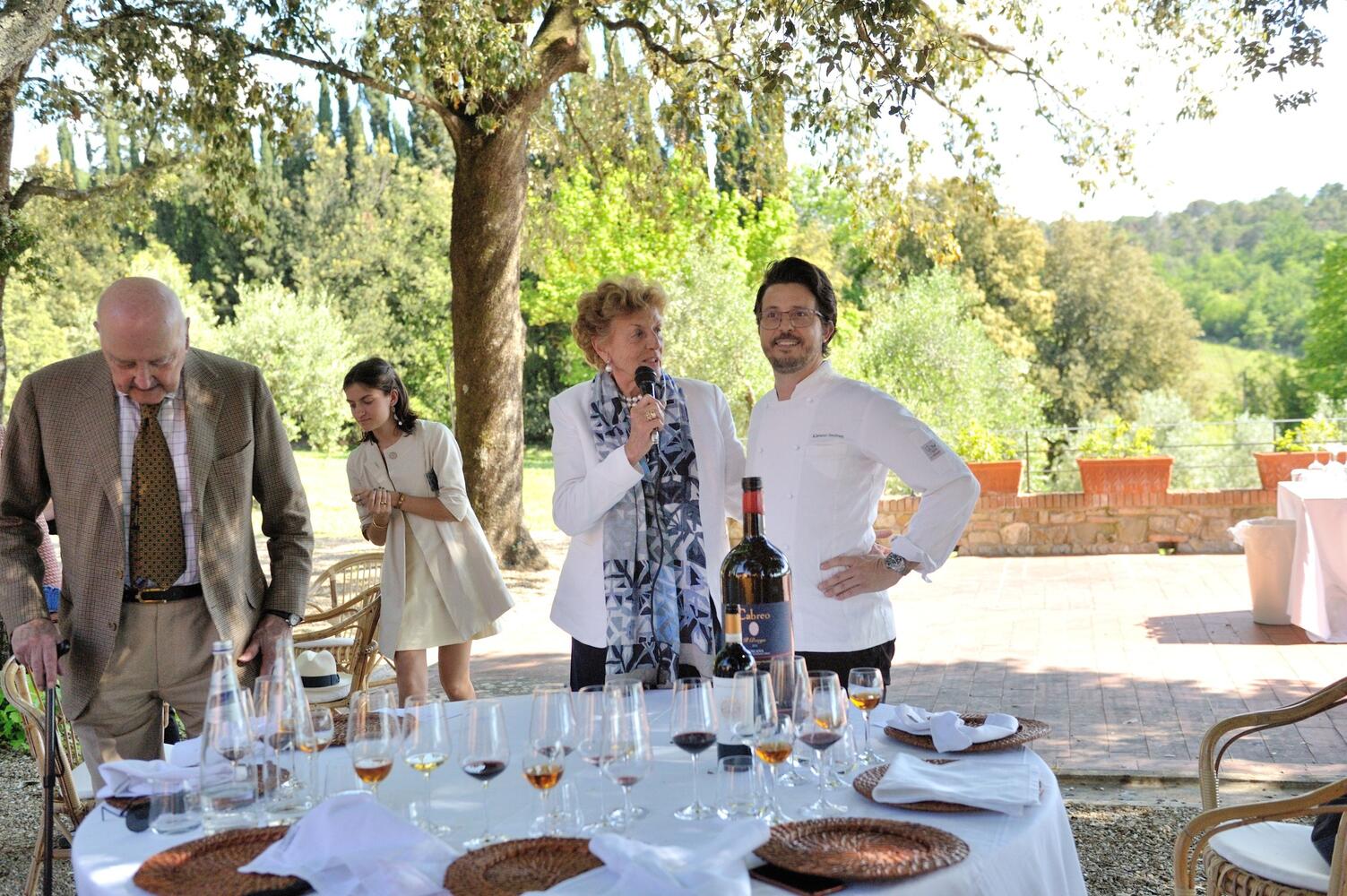 Alla presentazione del libro ha fatto seguito, presso la seicentesca Villa di Nozzole, un pranzo con degustazione di una selezione di etichette prodotte dalle Tenute del Cabreo: La Pietra Chardonnay Toscana IGT 2020 e Cabreo Toscana IGT nell’annata corrente 2020 e un grande formato proveniente dalla cantina storica, annata 2012. Durante il pranzo sono stati degustati anche il Chianti Classico Gran Selezione DOCG Giovanni Folonari 2018 e il Vin Santo del Chianti Classico DOC 2019 che ha accompagnato il dolce.