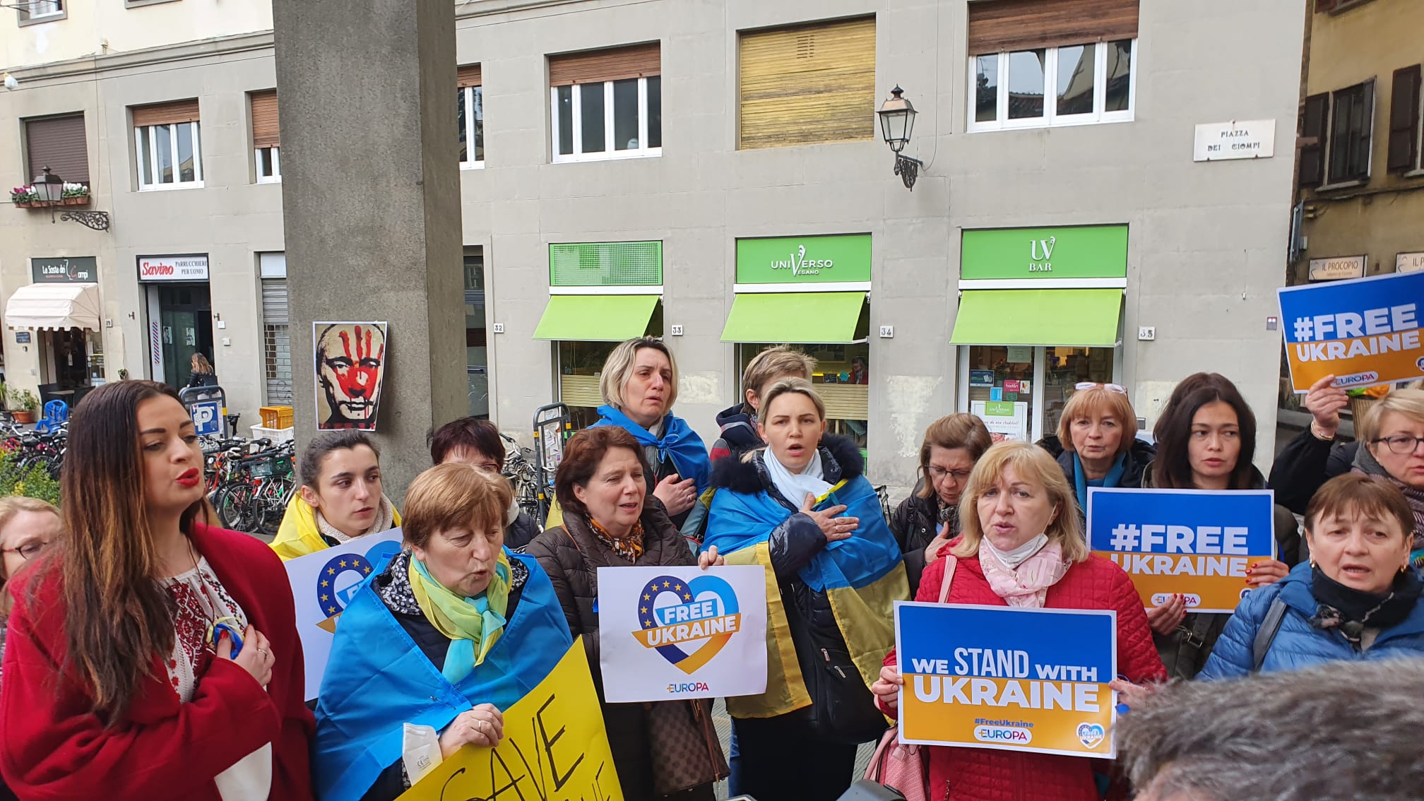 Ieri pomeriggio +Europa Firenze ha organizzato un presidio in piazza dei Ciompi per condannare la violazione del diritto internazionale, della sovranità e dell'integrità territoriale dell'Ucraina da parte della Russia di Vladimir Putin. Al presidio ha partecipato una nutrita rappresentanza della comunità Ucraina fiorentina, che ha manifestato l’angoscia e la preoccupazione che vive in queste ore a causa delle notizie che arrivano da Kiev. Un corteo di circa 150 persone si è poi snodato per le vie del centro, intonando l’inno ucraino.