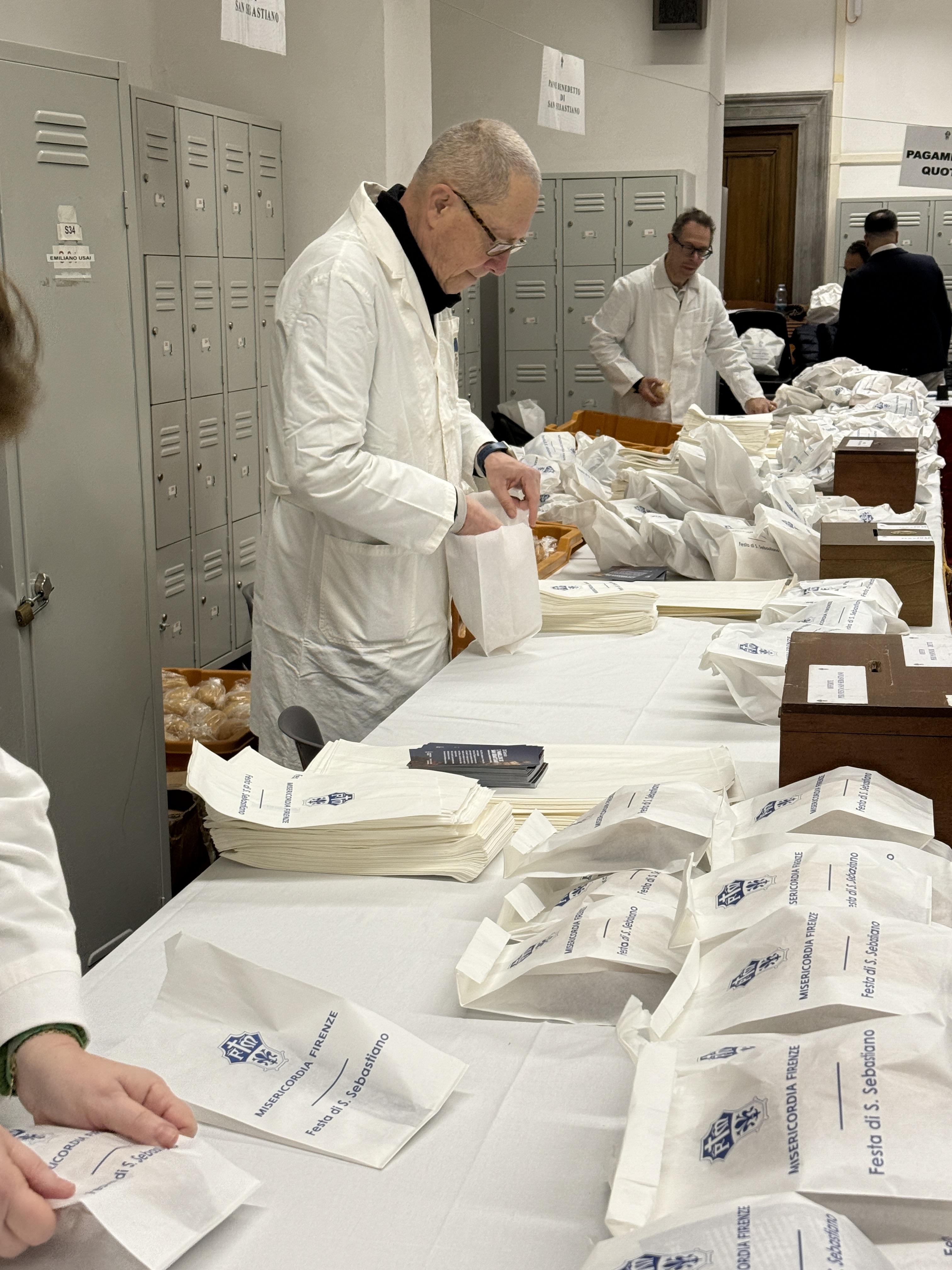 Firenze, 20 gennaio 2026 – Grande partecipazione da parte dei fiorentini in occasione delle celebrazioni del Patrono San Sebastiano, che fin della primo ore della mattinata si sono recati nelle sezioni della Misericordia di Firenze per ritirare i panellini benedetti, simbolo di fede, di amore verso il prossimo e di vicinanza alla città. Ne sono stati distribuiti 15 quintali (circa 18.500).