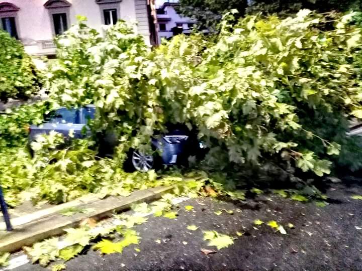 FOTOGRAFIE. Un forte temporale è scoppiato a Firenze verso le 17,30 ed è durato con intensità per una ventina di minuti. Un albero è caduto in viale Giovine Italia provocando tanta paura e disagi.