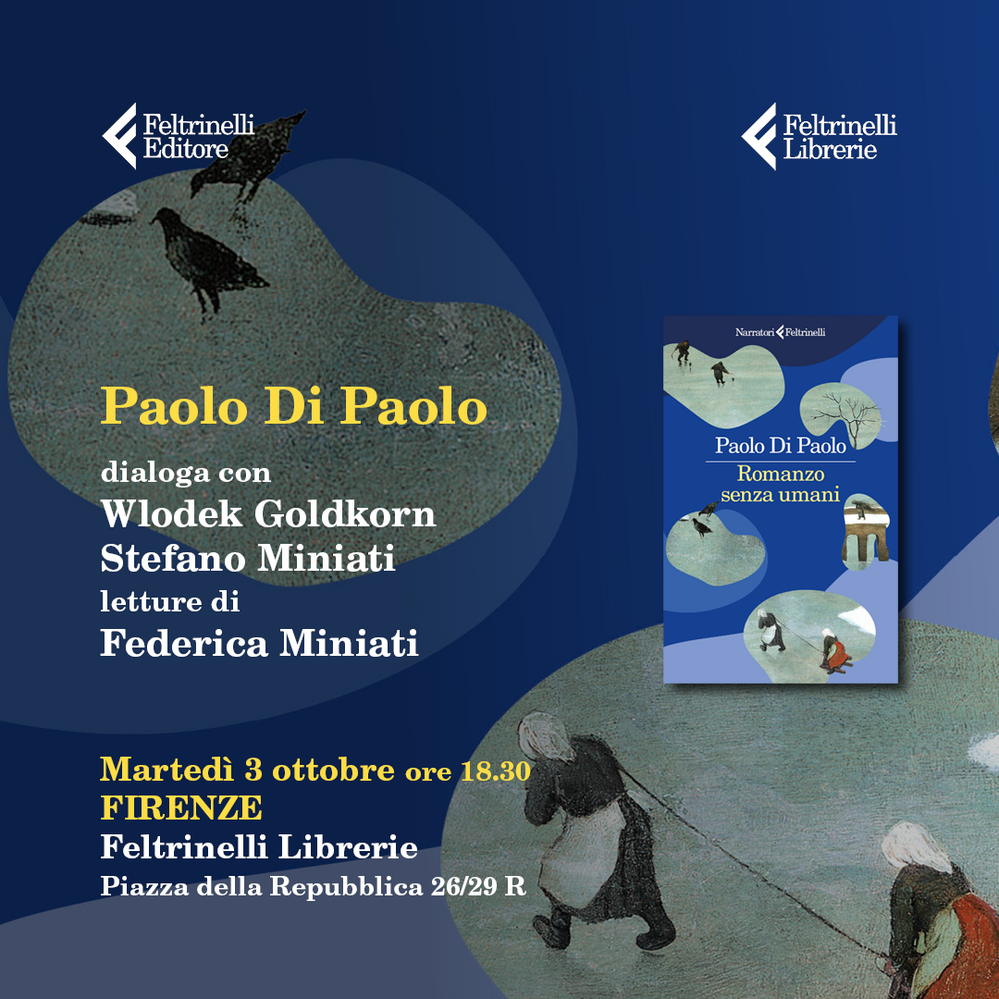 Martedì 3 ottobre (ore 18:30) alla Feltrinelli in Piazza della Repubblica 26, a Firenze, Paolo Di Paolo presenta "Romanzo senza umani" (edito da Feltrinelli). Intervengono Wlodek Goldkorn e Stefano Miniati. Letture di Federica Miniati.