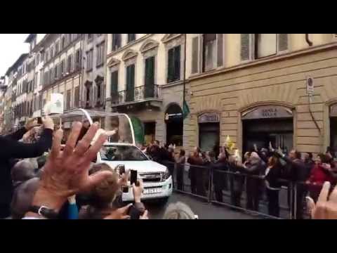 Verso le ore 14 è prevista una breve sosta in Arcivescovado, di fronte al Battistero. Per raggiungere lo Stadio, Papa Francesco uscirà in piazza San Giovanni intorno alle 15 per poi transitare a bordo della ‘papamobile’ per via de’ Calzaiuoli, piazza Signoria e piazza Santa Croce con la grande basilica francescana. A questo punto il Papa abbandonerà il centro storico. Costeggiando l’Arno si avvierà rapidamente allo Stadio “Artemio Franchi” dove alle ore 15.30 lo attende il momento più solenne della giornata: la Santa Messa con cinquantamila fedeli all’interno dell’impianto e tanti altri di fronte ai maxischermi collocati in piazza Signoria, piazza Santa Croce e nell’attiguo Stadio Ridolfi dove in seimila lo aspetteranno per la partenza in elicottero alla volta di Roma intorno alle 17.30.Le foto della giornata a Firenze di Papa Francesco (di Antonio Lenoci da Firenze, Chiara Cini da Prato)Il discorso di Papa Francesco a Firenze