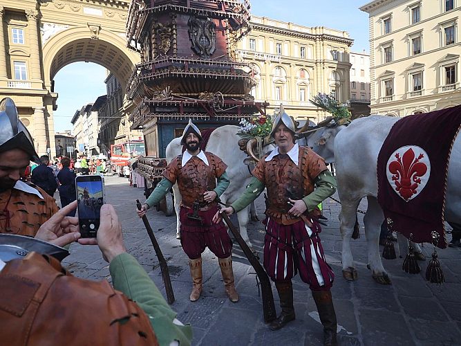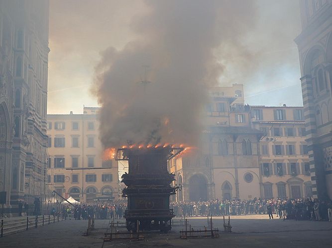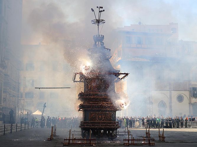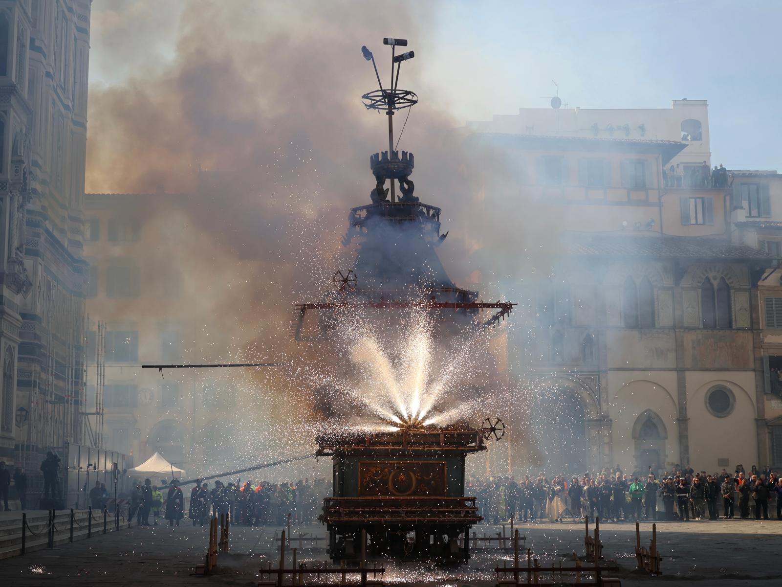 La storica rievocazione dello Scoppio del Carro anche quest’anno ha rinnovato una delle più antiche consuetudini popolari di Firenze. Una celebrazione che si tramanda da oltre nove secoli e che ricorda le imprese dei fiorentini durante le Crociate e il loro ritorno in città.