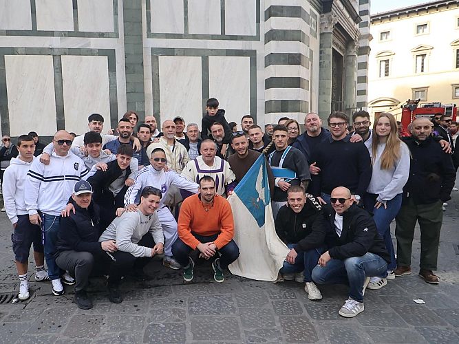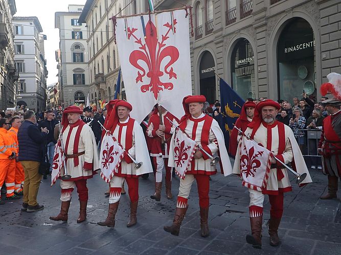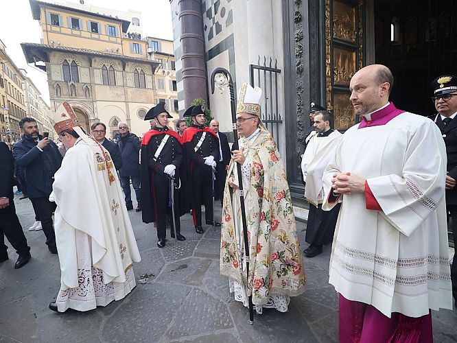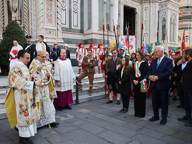 La mattinata si è conclusa con la celebrazione eucaristica presieduta dall’arcivescovo di Firenze Gherardo Gambelli. Al termine della messa il Gonfalone, il Porta Fuoco con il reliquiario con le Pietre del Santo Sepolcro, sono usciti dal Portone centrale della Cattedrale di Santa Maria del Fiore per essere deposte nella chiesa dei Santissimi Apostoli in Borgo SS. Apostoli.