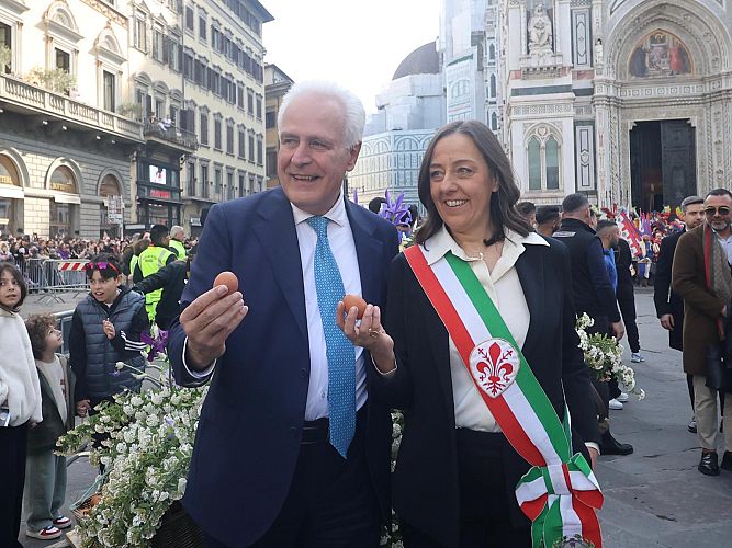 “È stato un momento bellissimo ed emozionante - ha detto la sindaca Sara Funaro - il volo della Colombina è stato perfetto, così come lo scoppio del carro. Uno spettacolo incredibile, che rappresenta anche un segno di buon auspicio. Voglio rivolgere i miei auguri più sinceri a tutte le fiorentine e a tutti i fiorentini, e a tutte le persone che in questi giorni sono in città. In un momento come quello della Pasqua, Firenze non può non tenere alta l’attenzione sui conflitti che ci sono nel mondo e sulle guerre in corso.