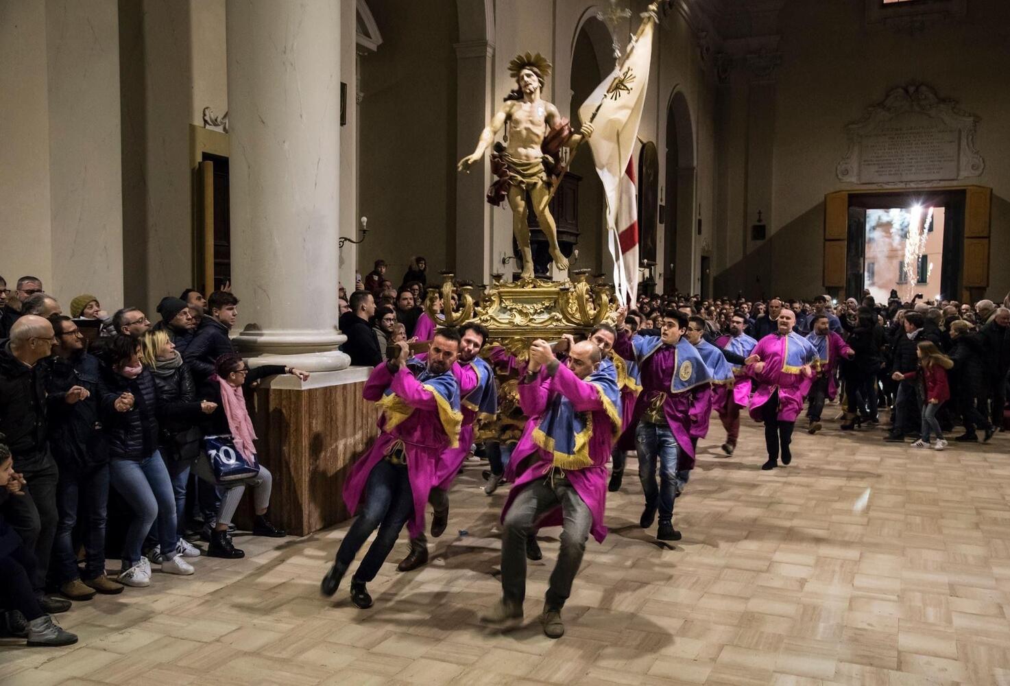 Altro momento di grande attesa la processione del Cristo risorto dopo la messa pasquale accompagnata dal “Rullo” in piazza Cavour con lo scoppio di 25.000 petardi. La cerimonia verrà riproposta il martedì successivo alla Pasqua e nel giorno dell'Ascensione.