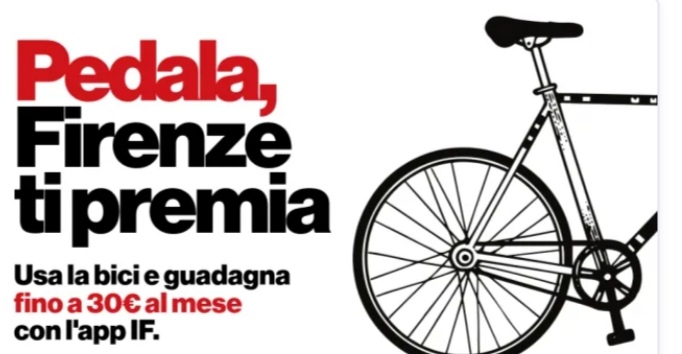 Pedala, Firenze ti premia è la nuova Iniziativa del Comune di Firenze che incentiva l’uso della bicicletta. I cittadini che partecipano, con App IF di Infomobilità del Comune di Firenze, ricevono contributi mensili. Richiesta online, premi erogati tramite bonifico.