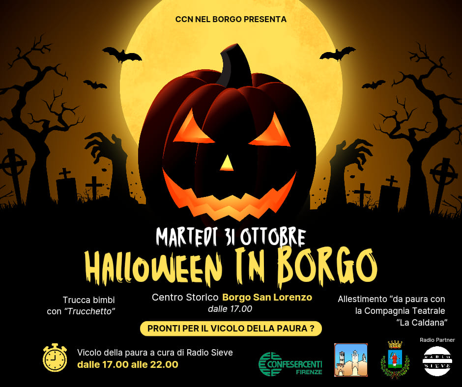 Nel centro storico spazio invece agli eventi del Centro Commerciale Naturale “Nel Borgo”. Dalle 17.00 vi aspettano i trucca-bimbi, la Compagnia Teatrale "La Caldana" e il Vicolo della paura con zombie, streghe ed effetti speciali.