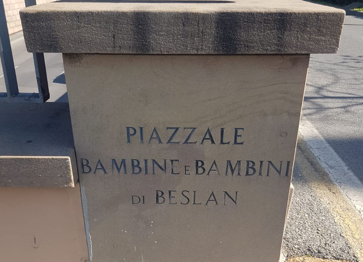 Firenze fu tra le prime città a decidere di intitolare uno spazio, nello slargo antistante l'ingresso della Fortezza da Basso, poco più di un mese dopo la strage: il piazzale Bambine e Bambini di Beslan. Oggi le targhe che ricordavano quelle piccole vittime innocenti non ci sono più, distrutte con ogni probabilità dalla disaccorta manovra di un mezzo pesante o riverniciate. Crediamo sia importante mettere presto riparo, ed installare una nuova targa, magari con segnaletica verticale e targa di marmo, più dignitosa e anche più sicura. Sarà mia cura effettuare al più presto un sopralluogo con i tecnici dell'ufficio Toponomastica per trovare la soluzione più idonea".