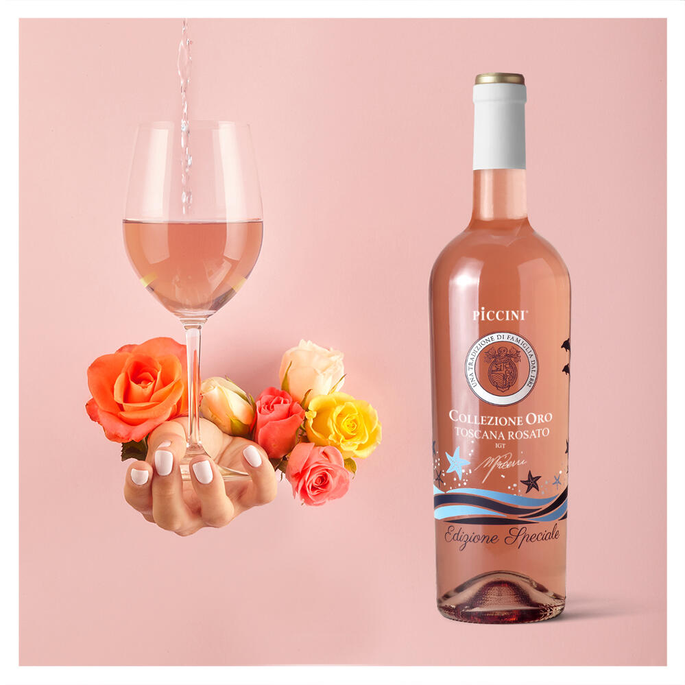 Rosato Toscana IGT è un vino fresco e profumato, che Piccini 1882 dedica ai winelovers più giovani. Il vino è un blend di Sangiovese, Merlot e Malvasia che racchiude in sé la moltitudine dei suoli e climi presenti in Toscana, un insieme che dalla zona costiera mitigata dalle brezze marine giunge fino alle grandi escursioni termiche tipiche dei monti del Chianti. Il Rosato si presenta delicato, dal colore rosa tenue ottenuto per mezzo di una breve macerazione del mosto sulle bucce. Al palato mostra la sua freschezza ben bilanciata da note di frutta rossa matura, con un finale intenso e persistente.Rosato Toscana IGT è il vino dell’estate: ottimo per accompagnare aperitivi, antipasti, pesce, carni bianche in genere.