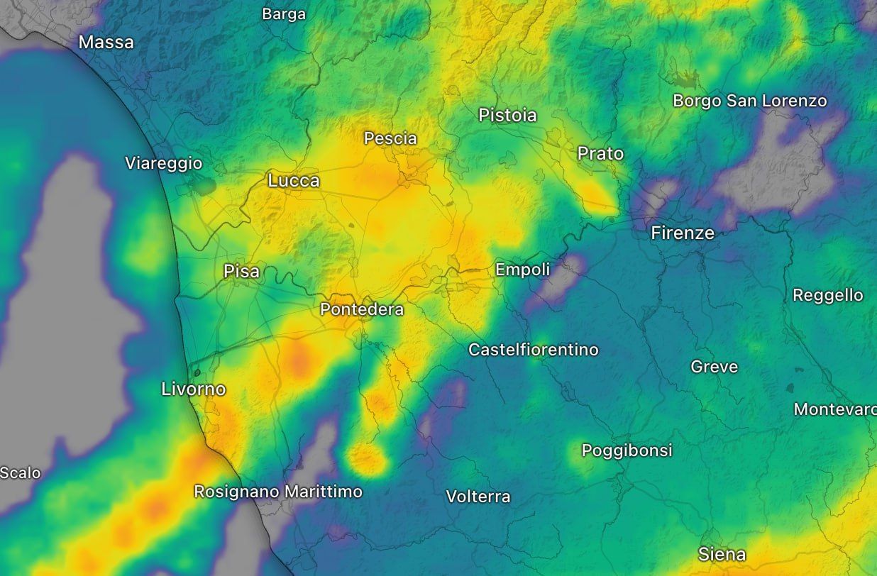 AGGIORNAMENTO ORE 17,20 - Linea temporalesca ancora attiva da Livorno fino al Mugello passando per le province di Pisa, Prato, Pistoia, Lucca e Firenze, da questa mattina stazionaria e lo sarà ancora nelle prossime ore.