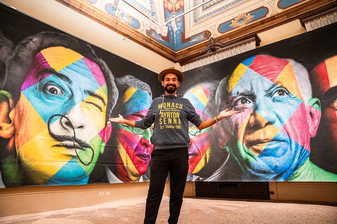 “Ho realizzato otto pannelli che rileggono le opere dei geni ritratti in questo grande murale – spiega Eduardo Kobra – il pannello più grande è dipinto su un supporto di materiale vinilico, mentre le altre sono pitture su tela. Il mio lavoro principale è fare murales, ne ho realizzati in 36 paesi e questo sarà il quinto che faccio in Italia”.