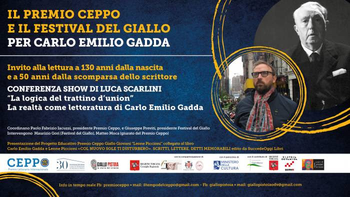 L’evento letterario, organizzato dal Premio Internazionale Ceppo in collaborazione con il Festival del Giallo, è un omaggio a Carlo Emilio Gadda (1893-1973), una delle voci più originali della letteratura del Novecento, a 50 anni dalla morte e a 130 dalla nascita.