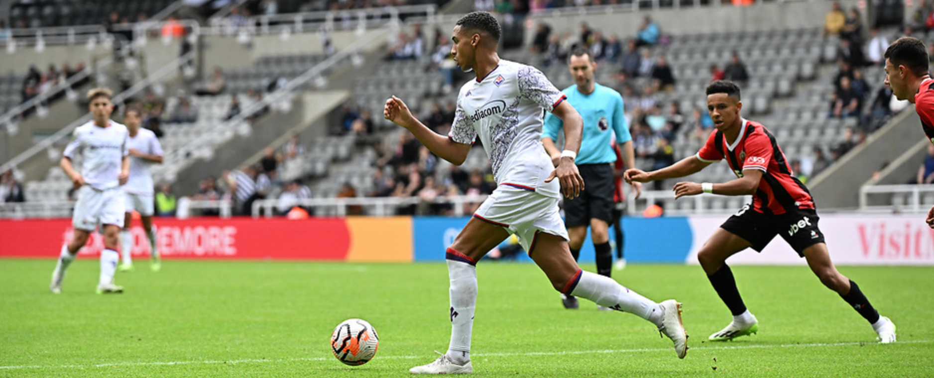 Viola in vantaggio con Jovic su assist di Sabiri dopo 18'. Due occasioni al 32' con Ikone' che prende il palo dopo un'azione insistito dei viola e sulla ribattuto Mandragora manda di poco alto. Decisivo Schmeichel su Ikone' e su un destro di Martinez Quarta dal limite, ma il portiere del Nizza (che in Inghilterra fu protagonista dello scudetto del Leicester) si deve arrendere a Kouame al 34' sugli sviluppi di un corner.
