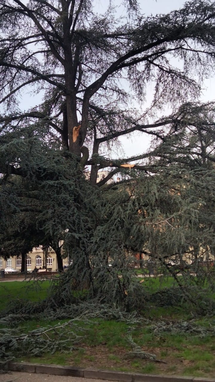 Incidente durante l'intervento su un albero di alto fusto danneggiato dalle forti piogge della notte. Stamane i vigili del fuoco sono intervenuti in piazza Indipendenza per procedere alla rimozione di un ramo pericolante.