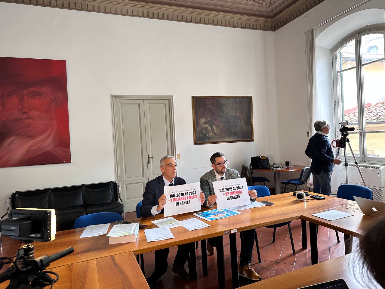 “Dati alla mano abbiamo voluto dimostrare che il Pd sta solo facendo una sterile e falsa propaganda sugli interventi del Governo Meloni in sanità. Nel 2024 dovrebbero arrivare circa 1 miliardo e mezzo in più in Toscana rispetto al 2019, cioè l’ultimo anno prima della pandemia Covid. Senza le risorse in più stanziate dall’esecutivo Meloni, rispetto a quanto era stato previsto dai Governi Conte e Draghi, a quest’ora la Toscana sarebbe già commissariata.Soltanto quando Giorgia Meloni è andata al Governo il Pd ha proposto di agganciare la spesa sanitaria al Pil. Nel giugno 2022 si sono conclusi gli Stati Generali della Salute e la maggioranza ha presentato il documento conclusivo in cui non c’era traccia della proposta che fa oggi il Pd. Nel documento, invece, veniva chiesto che il Fondo Sanitario Nazionale venisse gradualmente aumentato, cosa che sta facendo Palazzo Chigi.