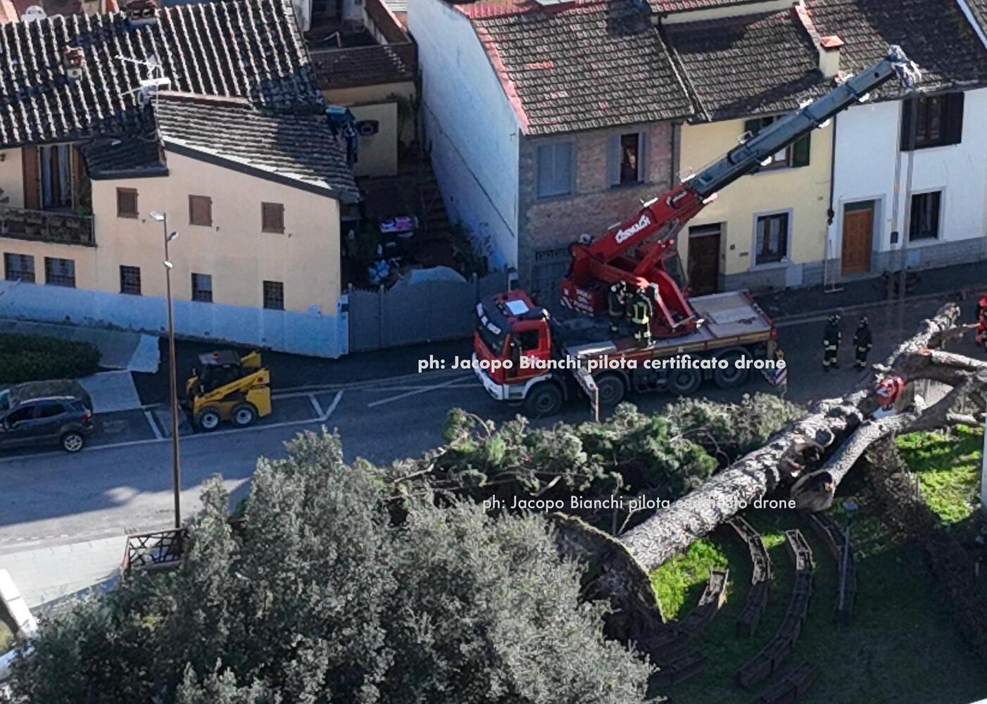 La strada è rimasta chiusa al traffico e i vigili del fuoco sono intervenuti per le operazioni di taglio e rimozione della pianta. Intervenute anche squadre de La Racchetta e dell’Humanitas. Sul posto ben presto la sindaca Claudia Sereni, il vicensindaco Yuna Kashi Zadeh e gli assessori Lorenzo Tomassoli e Lorenzo Vignozzi, oltre a dirigenti e tecnici del Comune.