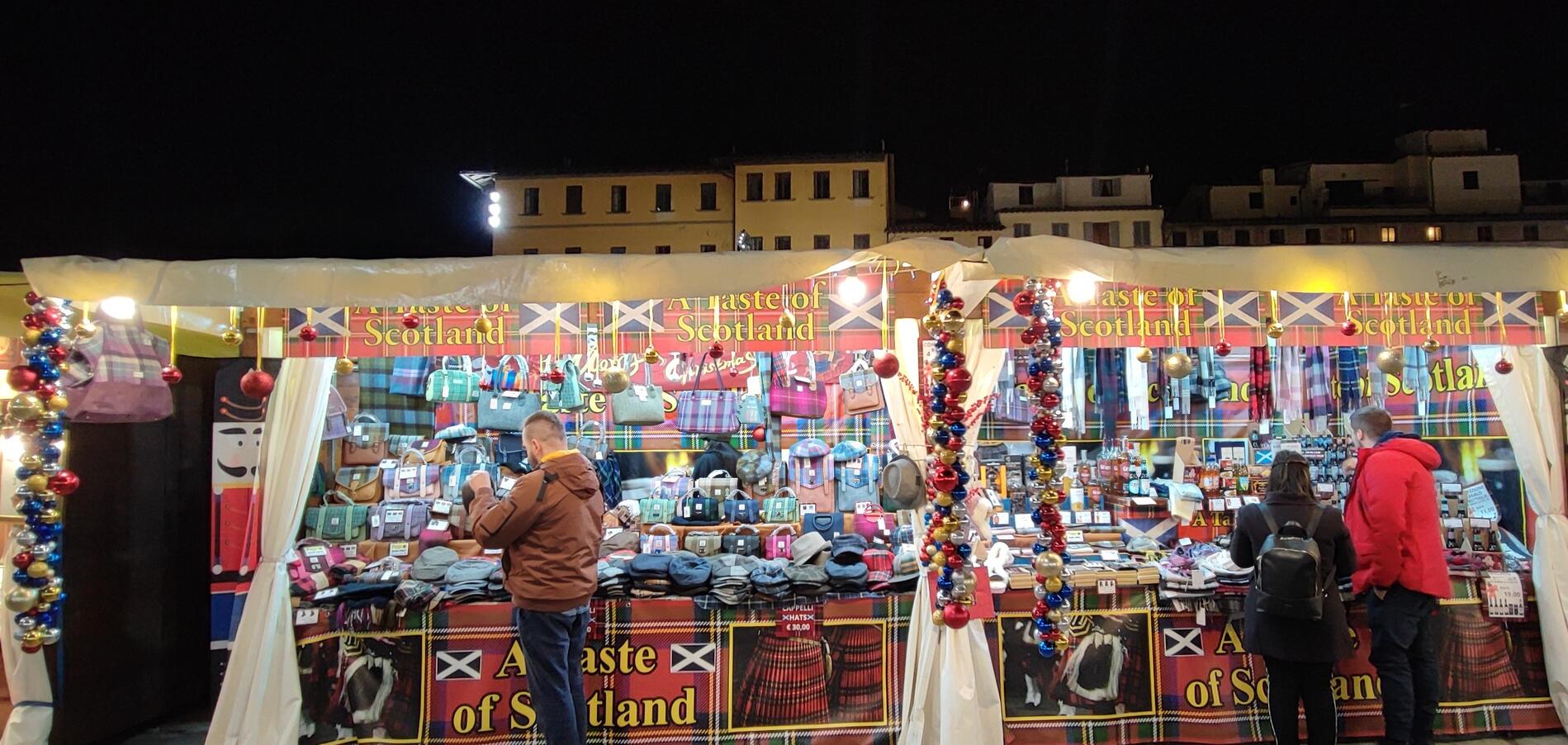 La presenza della Scozia in Piazza Santa Croce consolida il gemellaggio tra Firenze ed Edimburgo, splendide città e sedi di due tra i più belli e visitati mercatini di Natale al mondo. Occasione anche per rispolverare un po' di storia che racconta come il Principe Carlo Stuart, nato a Roma, concesse ufficialmente anche agli italiani di indossare i colori del tartan Royal Stewart nelle cerimonie. Oggi gli italiani residenti in Scozia per sentirsi legati alle loro tradizioni utilizzano principalmente il tartan del Clan Italia, creato da Micael Lemetti, stilista italo-scozzese, la cui famiglia è originaria di Barga, in provincia di Lucca.