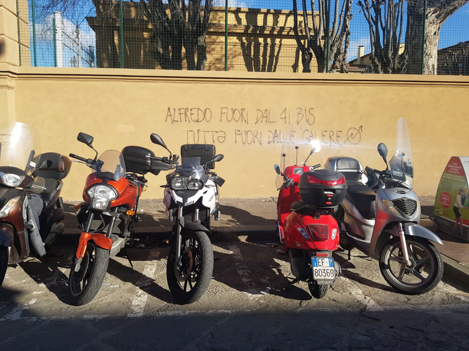 Firenze, 29.01.2023 - Scritte sui muri delle scuole fiorentine: “Alfredo libero!” - uno slogan ormai presente ovunque a Firenze. Ma chi è Alfredo? Alfredo Cospito è un anarchico identificato come il vertice della Federazione anarchica informale - Fronte rivoluzionario internazionale: è accusato di aver gambizzato un uomo, piazzato due ordigni vicino alla scuola allievi Marescialli di Cuneo e quindi accusato di attentato contro la sicurezza dello Stato. Attualmente si trova recluso al regime di 41 bis.