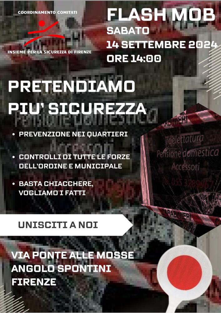 ritrovo sabato 14 settembre alle ore 14 in San Jacopino, in via Ponte alle Mosse all'angolo con via Spontini per un flash mob di sensibilizzazione sulla sicurezza.