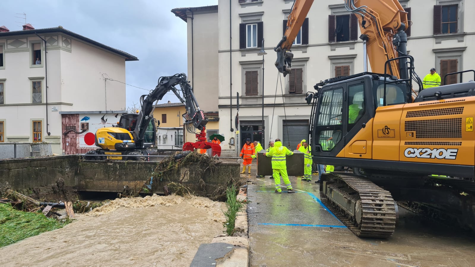 Completata la riparazione in urgenza con blocchi in cemento già a disposizione presso al sede operativa e posizionati a cura del Consorzio di Bonifica sul Torrente Rimaggio a Sesto Fiorentino – in questo caso una precisazione necessaria: l’esondazione e conseguente rottura della spalletta destra è avvenuta a causa della sezione del ponte insufficiente per accogliere e smaltire le acque di piena e NON per ostruzioni di detriti o materiale galleggiante, quasi del tutto assente o comunque in quantità tale da non influire assolutamente sull’andamento delle acque.