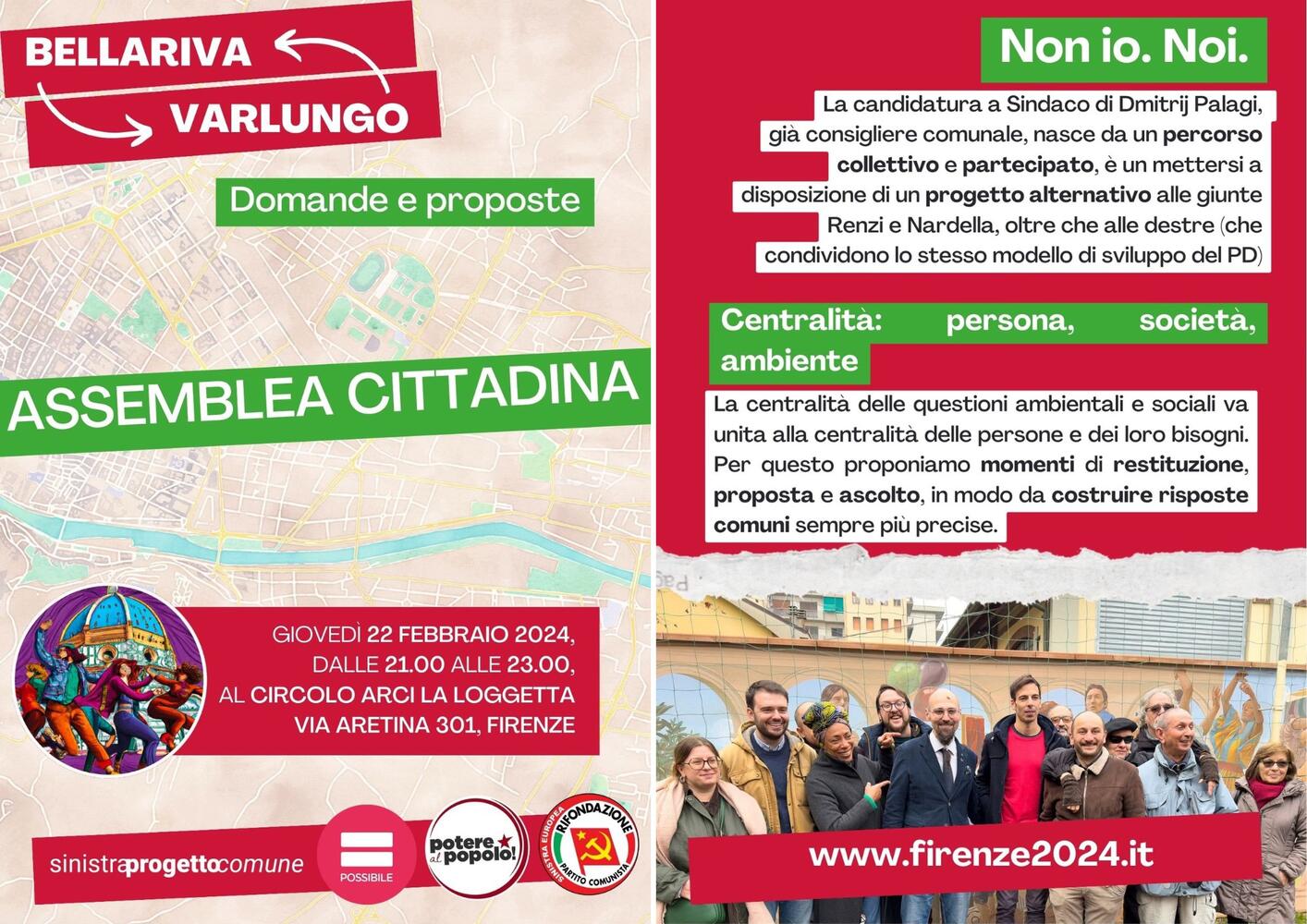Questa sera Sinistra Progetto Comune, Possibile, Potere al Popolo e Rifondazione sono al Circolo ARCI La Loggetta (via Aretina 301, Firenze) per un'assemblea pubblica sulla zona di Bellariva-Varlungo, insieme al candidato Sindaco Dmitrij Palagi.