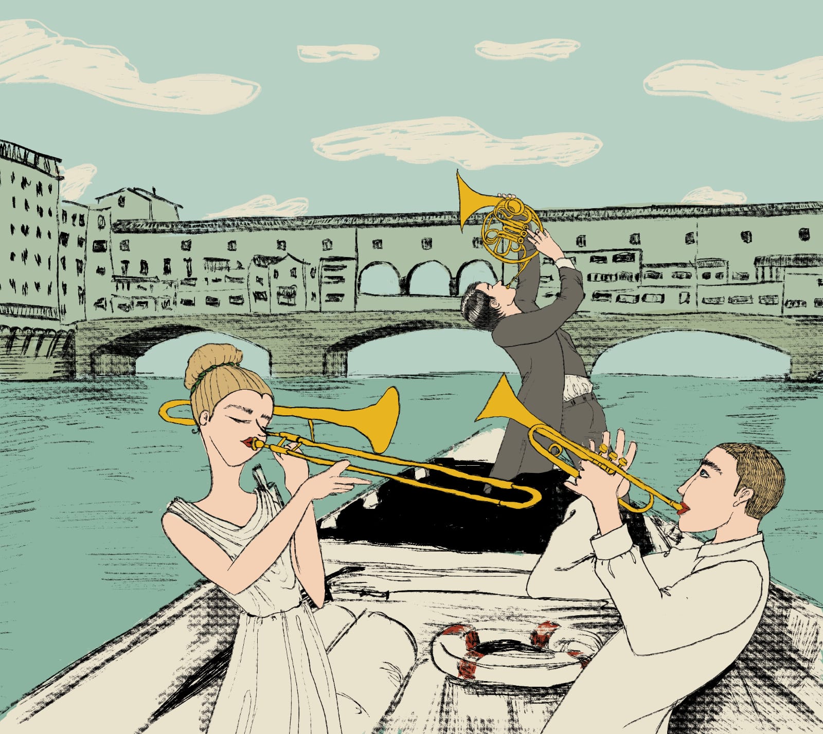 Il programma del concerto sull’Arno a bordo delle barche dei Renaioli fiorentini, intitolato “Dalla selva oscura all'amor che move il sole e le stelle... degli Ottoni” eseguito dai tre ensemble dell’Italian Brass Week, il Golden Bridge Ensemble diretto da Dale Clevenger, l'Italian Brass Ensemble diretto da Luca Benucci e l' Ensemble Dante diretto da Øystein Baadsvik prevede musiche di Claudio Monteverdi, George Friedrich Händel, Henry Purcell, Paul Dukas, Richard Strauss, Leonardo da Vinci, Pietro Mascagni scelte per legarsi alle tematiche delle tre cantiche dantesche della Divina Commedia.