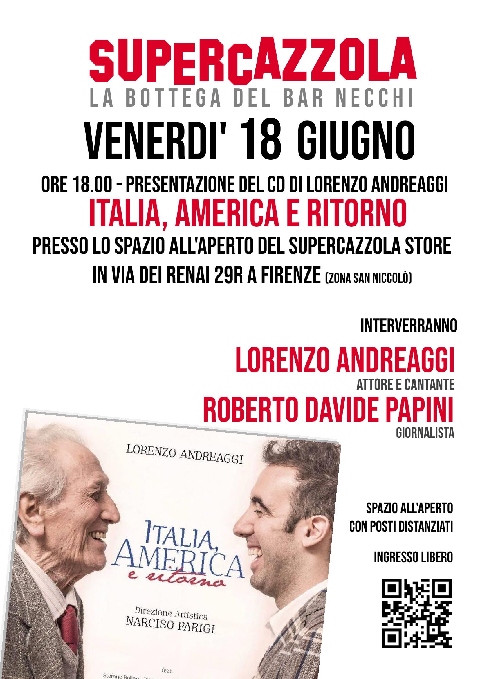 Venerdì 18 Giugno alle ore 18.00 presentazione del CD musicale di Lorenzo Andreaggi “Italia America e Ritorno” per la direzione artistica del grandissimo Narciso Parigi.