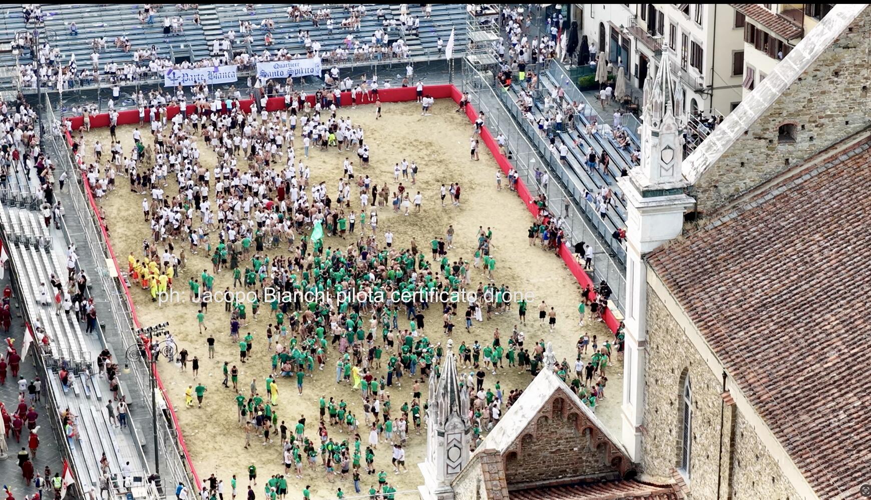 Dopo il trionfo rosso di ieri, con il 16½-6, che stabilisce il nuovo record di cacce in una sola partita, oggi in campo Bianchi-Verdi nella seconda semifinale. Ieri in tribuna il cantante Lorenzo Cherubini, oggi il calciatore della Fiorentina Rolando Mandragora. Il Calcio storico piace anche ai vip.
