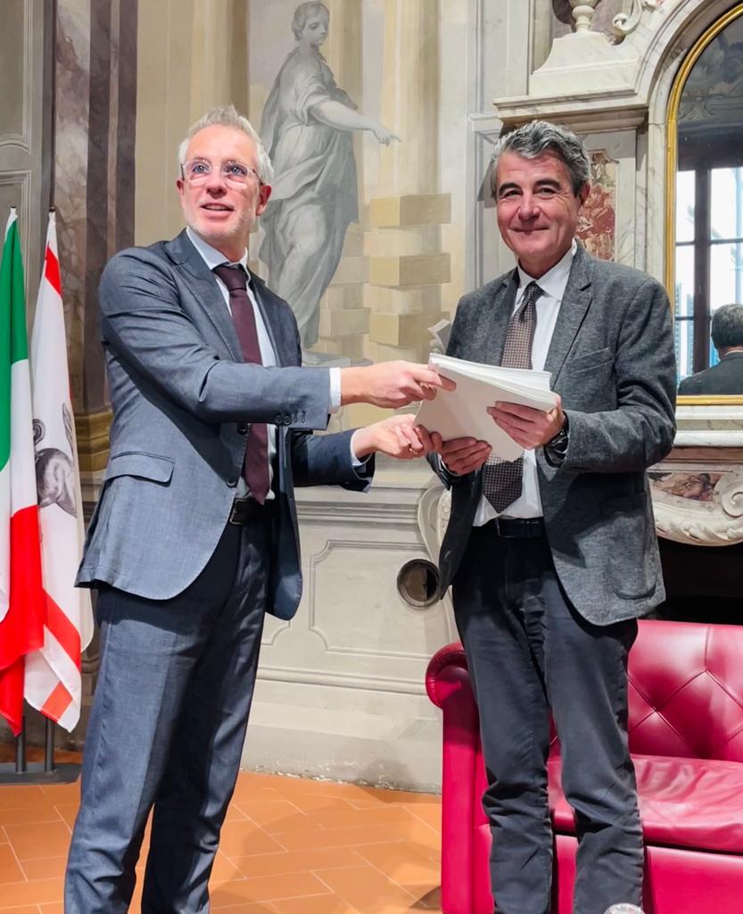 Consegnate 2.000 firme a sostegno del treno ibrido Siena-Roma all’assessore regionale ai trasporti Stefano Baccelli. In Consiglio regionale il Vicepresidente Stefano Scaramelli, accompagnato da una rappresentanza di sottoscrittori della petizione, oggi ha consegnato le firme raccolte a Siena per avere sul territorio il treno Blues ibrido che consentirebbe di salire in stazione a Siena e arrivare a Roma in due ore, senza cambiare mezzo.
