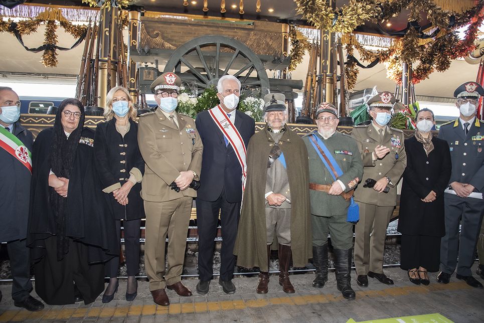 Oggi, 31 ottobre 2021, nell’ambito delle celebrazioni dell’anniversario della traslazione del Milite Ignoto, ha avuto luogo una commemorazione con deposizione di una corona di fiori presso il monumento ai Caduti in Piazza Unità d’Italia e, a seguire, l’inaugurazione della mostra a bordo del treno storico rievocativo presso il binario 16 della Stazione ferroviaria di Santa Maria Novella.Autorità civili e militari, insieme a tantissimi cittadini e a rappresenti di tutte le Forze Armate, hanno voluto visitare Il “Treno del Milite Ignoto’’ il convoglio speciale che, da Aquileia a Roma, sta ripercorrendo le tappe del convoglio del 1921: la mostra allestita dal Ministero della Difesa sarà aperta fino alle ore 21.00.