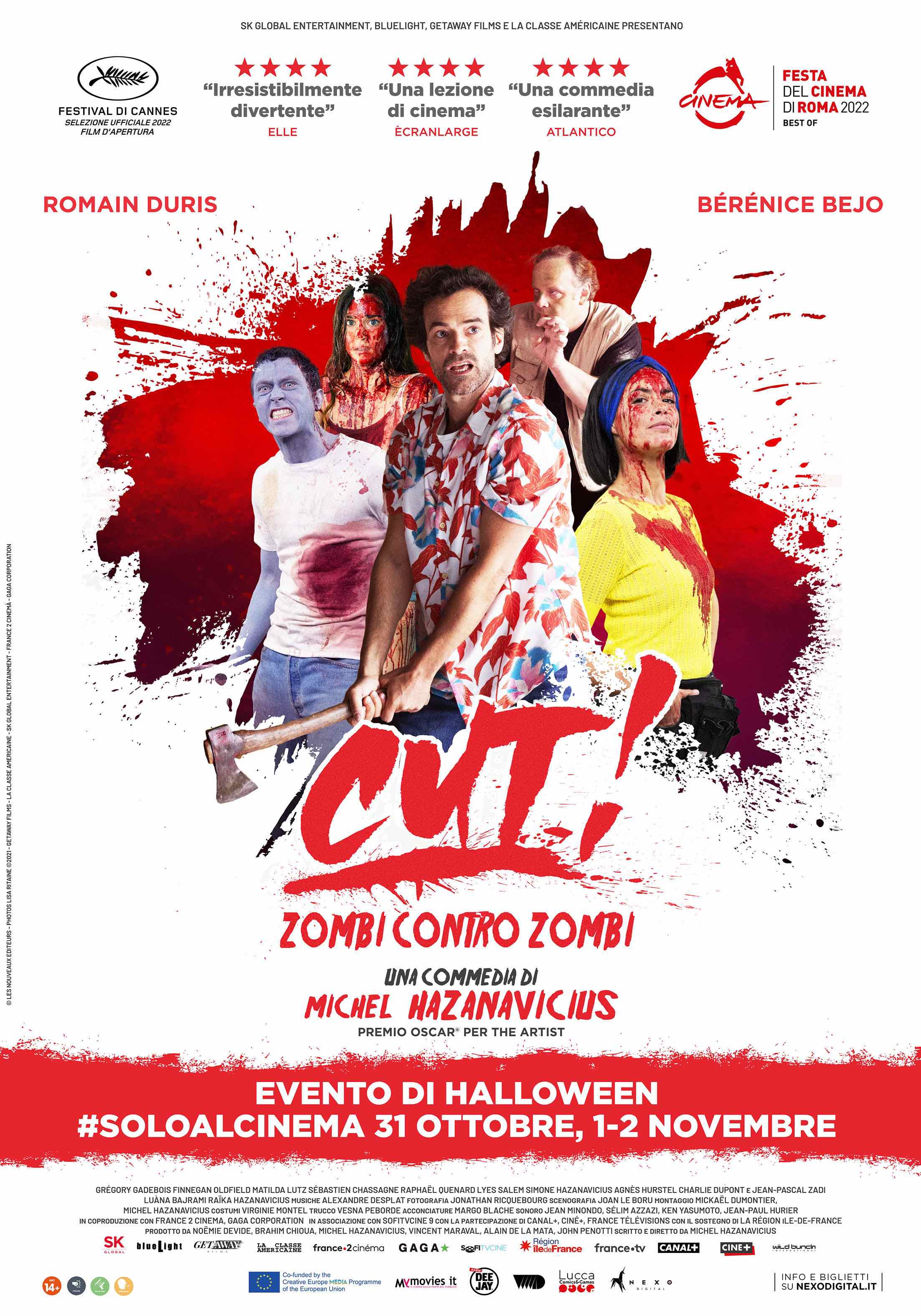 Commedia irresistibilmente dissacrante, CUT! ZOMBI CONTRO ZOMBI,che vede nel cast anche Romain Duris e Bérénice Bejo, ci porta sul set di un film horror a basso costo e tutto pare virare verso il disastro. Circondato da tecnici stanchi e attori disinteressati, il regista sembra essere l'unica persona dotata dell'energia necessaria per dare vita a un altro film sugli zombi. Ma mentre si prepara a girare una scena decisamente poco entusiasmante, ecco che compaiono dei veri… morti viventi! Un film inaspettato, divertentissimo e imprevedibile dove al centro di tutto c’è l'amore per il cinema, in tutte le sue forme e le sue ossessioni, in tutte le sue favolose, ammalianti, irriverenti stranezze.