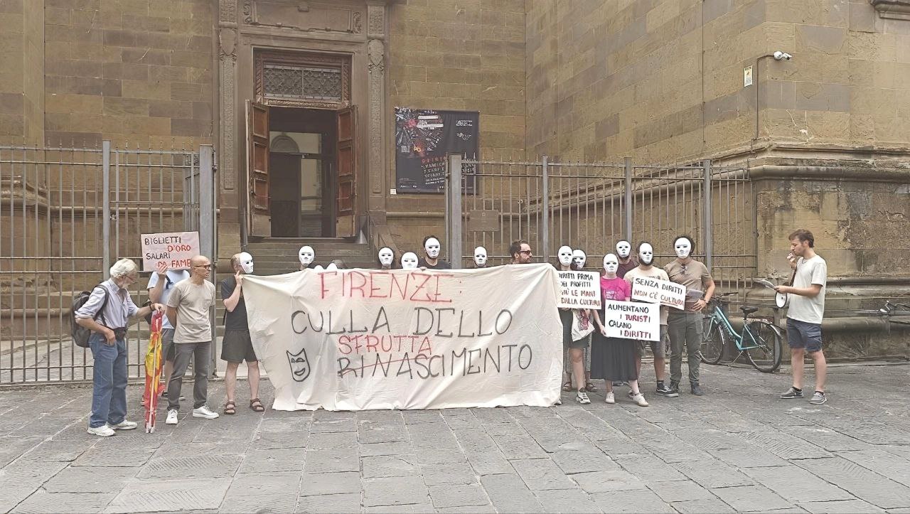 Lavoratrici e lavoratori, col sostegno di USB Firenze, Mi Riconosci? e Workers in Florence, hanno manifestato al piazzale degli Uffizi per denunciare pubblicamente, davanti a tutta la cittadinanza e ai turisti qual è la realtà dentro i musei Statali di Firenze: "Una realtà fatta di salari da fame e precarietà. Il caso Dussmann è perfettamente in linea con ciò che caratterizza il comparto cultura italiano, in cui vige il sistema del part-time involontario e l’applicazione del contratto multiservizi, un CCNL nato per i servizi di pulizie e sanificazione e che prevede un trattamento salariale poverissimo, che nessun tipo di lavoratore e lavoratrice dovrebbe subire".