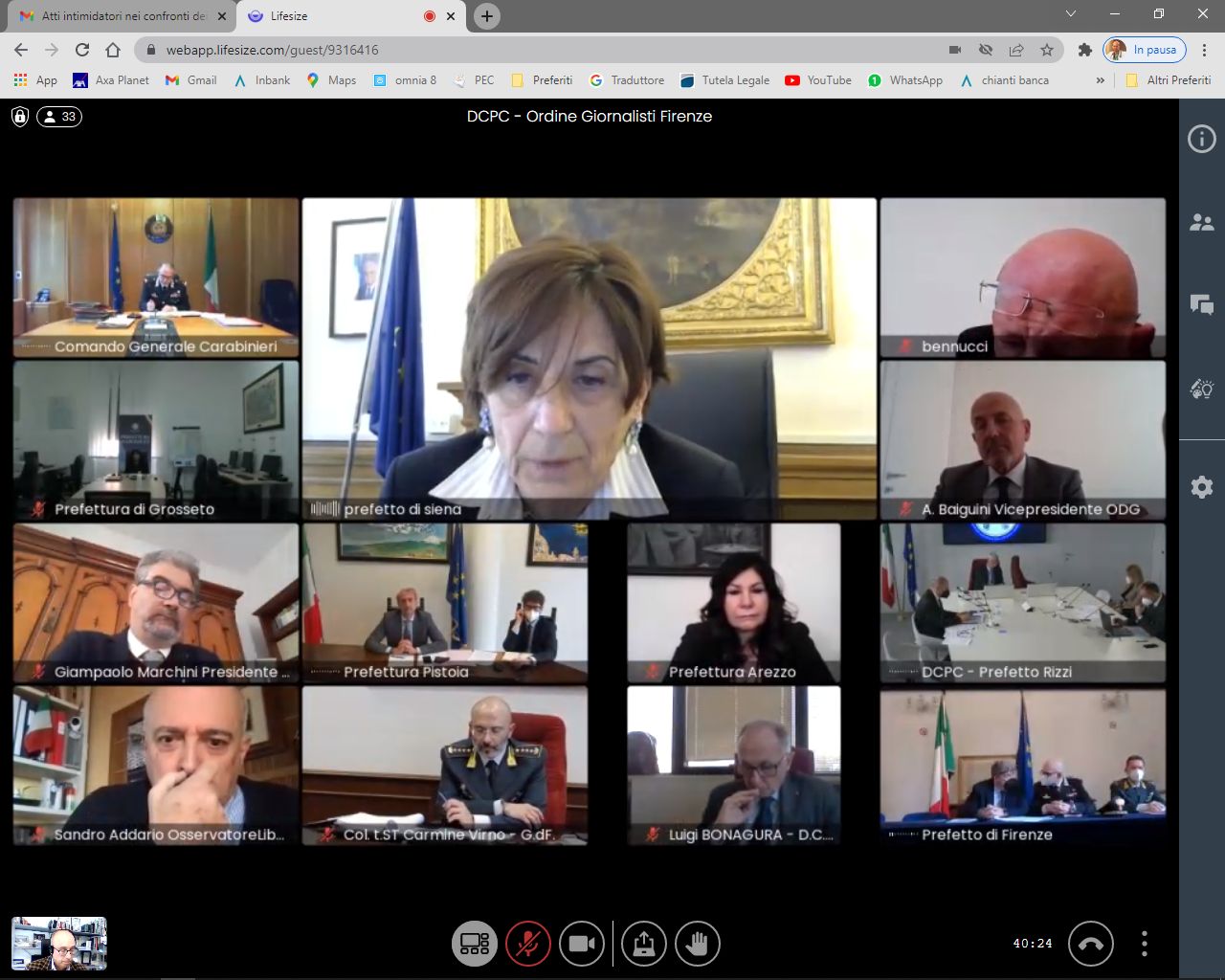 FIRENZE- Il Fenomeno atti intimidatori nei confronti dei giornalisti è stato il tema di una riunione in videoconferenza, che si è svolta stamani per iniziativa del Ministero dell’Interno, Dipartimento della pubblica sicurezza, Direzione centrale della Polizia criminale.