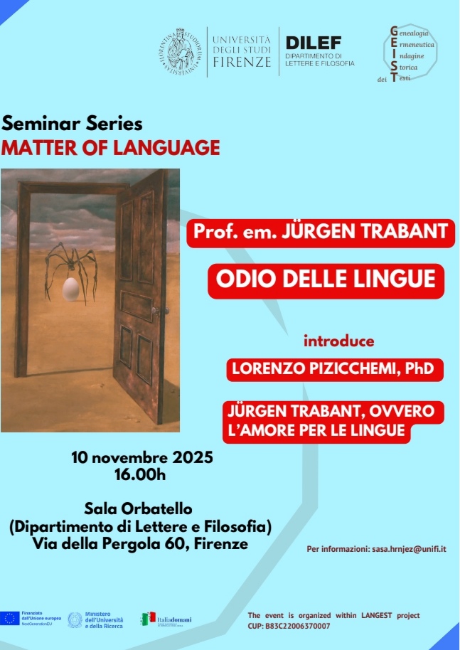 Il Circolo Linguistico Fiorentino dà notizia della lezione del Prof. Emeritus Jürgen Trabant all'interno del ciclo dei seminari Matter of Language.