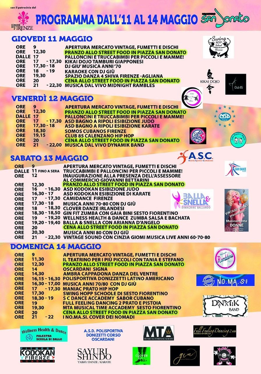 Dall’11 al 14 maggio torna, nel Quartiere 5, presso il centro San Donato di Firenze la 5°edizione di Uff – Urban Food Festival in via Forlanini, 1. Quattro giorni di festa per tutta la famiglia organizzati dall’associazione culturale Fumetti e Dintorni con il patrocinio del Comune di Firenze. Una manifestazione carica di allegria e divertimento che dal 2018 allieta le famiglie fiorentine con canti, balli, street food con pietanze in arrivo da tutta Italia ed oltre.
