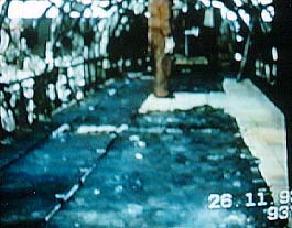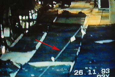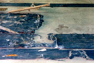 In quel punto la moquette (12 sezioni di tappetini di forme e dimensioni diverse) presenta un buco. Il tessuto è stato sfibrato nella trama. Potrebbe trattarsi del punto in cui il corpo motore del missile è penetrato, a 2.500 chilometri l'ora, strappando il tappetino.
