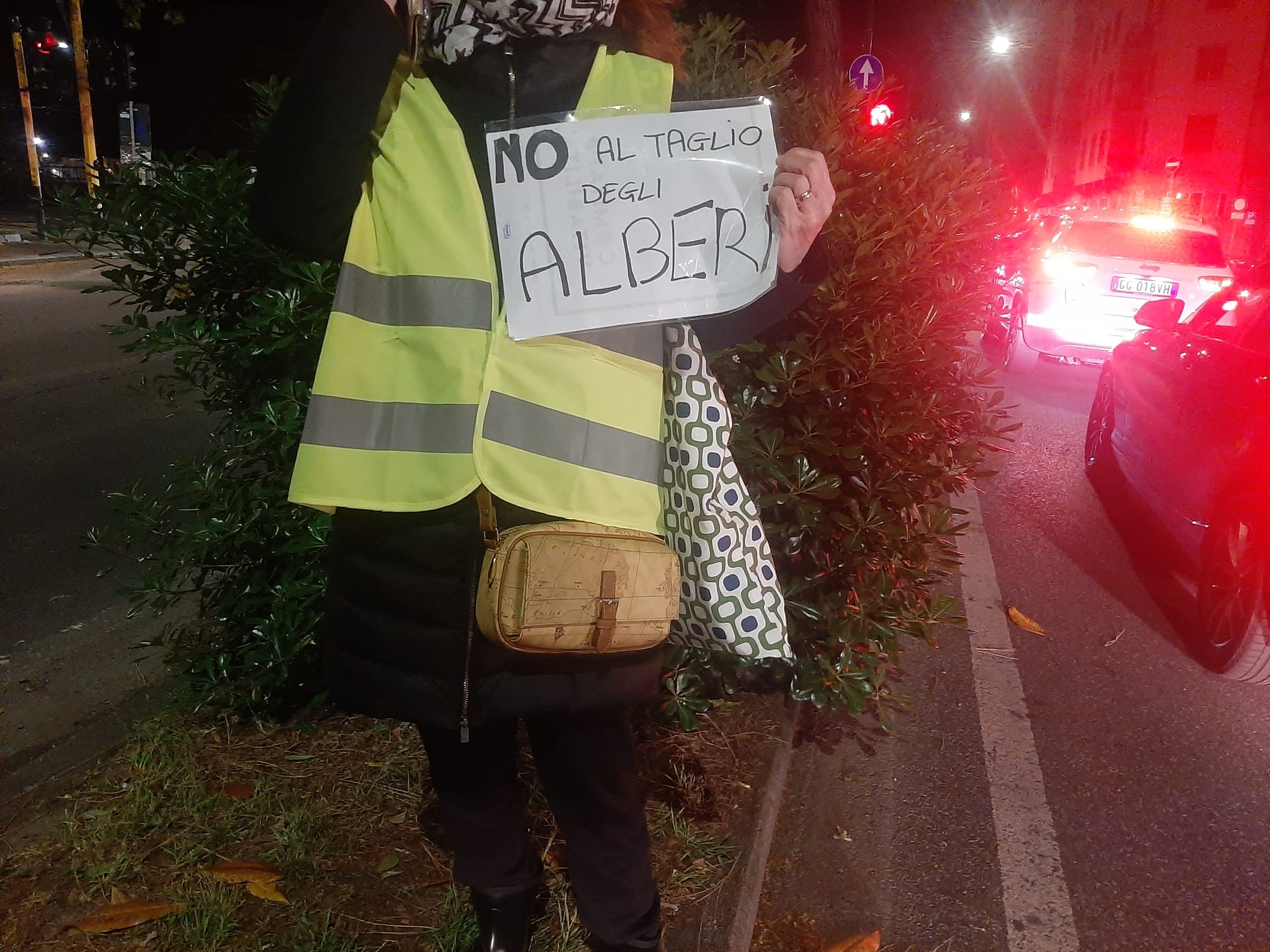 Anche questa notte manifestanti presenti in viale Redi, chiamati a raccolta da Italia Nostra e comitati di cittadinanza, per chiedere di interrompere l'abbattimento degli alberi "spartitraffico", previsto nel corso di questa settimana.