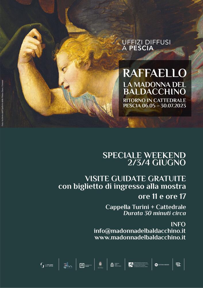 A Pescia si terranno delle speciali visite guidate alla mostra Raffaello, La Madonna del Baldacchino. Ritorno in cattedrale e al duomo. Le visite guidate saranno comprese nel costo del biglietto e si svolgeranno alle 11.00 e alle 17.00 dei giorni venerdì 2 giugno, sabato 3 giugno e domenica 4 giugno. La prenotazione è altamente consigliata e si può effettuare inviando una mail all’indirizzo info@madonnadelbaldacchino.it.